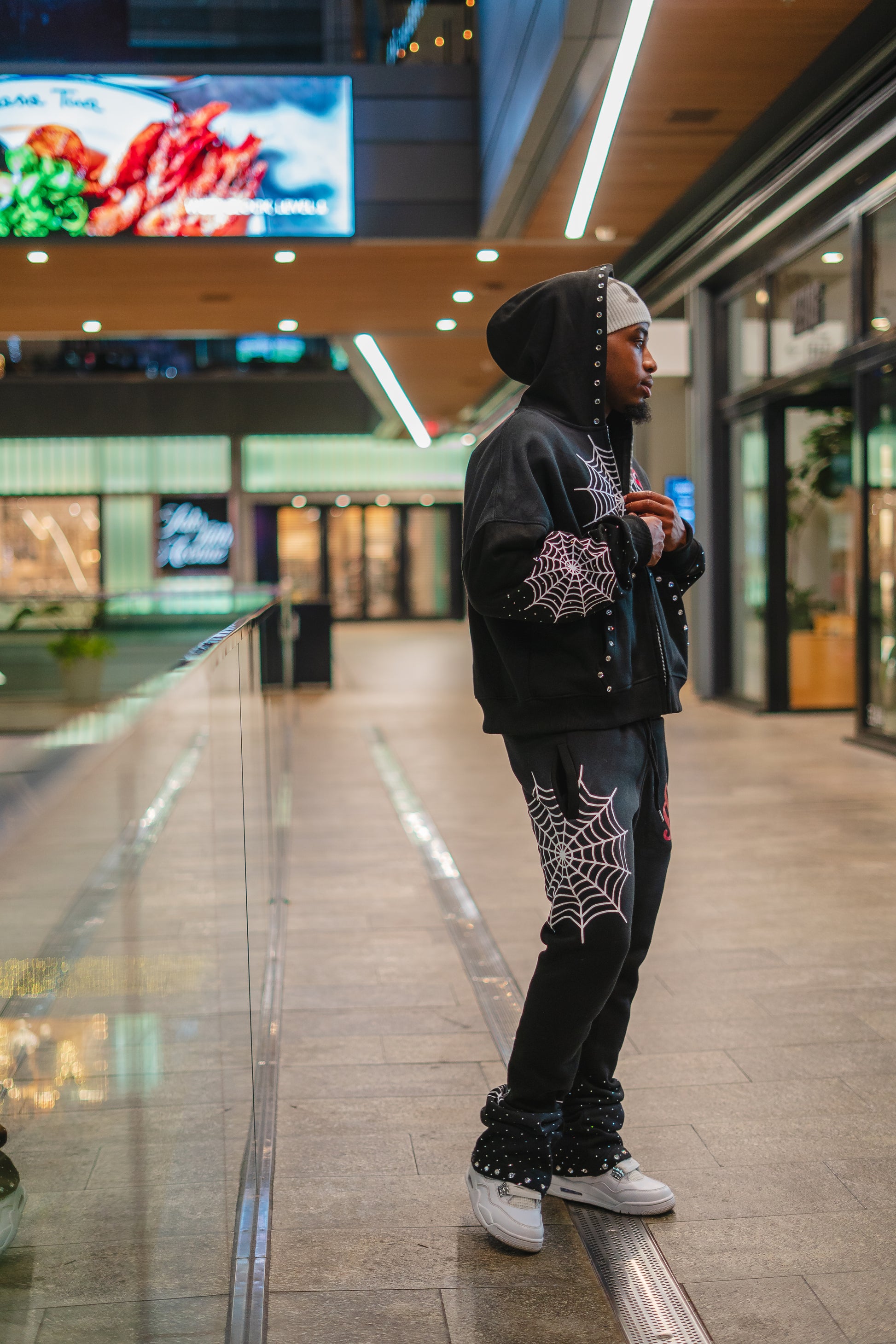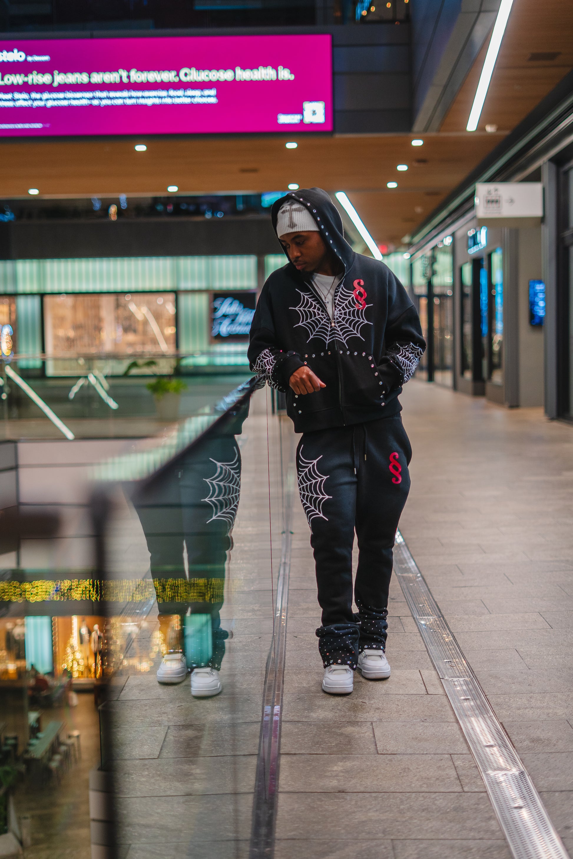 The Silkedverse Men’s Winter Set blends Miles Morales' Spider-Verse inspiration with Silked’s signature streetwear edge. Featuring spiderweb designs across the hoodie and pants and finished with bold gem detailing. This winter-ready set delivers warmth, style, and standout flair.